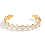 Clover Loop Open Cuff (White) – Stainless Steel and Water Proof