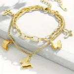 Elevate your style with the 18k Gold Plated Multilayer Premium butterfly Stainless Steel Bracelet, a piece that exudes both elegance and strength. Featuring multiple layers of sleek chains, this bracelet is plated with 18k gold for a radiant, luxurious shine. The stainless steel construction ensures durability and resistance to tarnish, making it perfect for everyday wear or special occasions.